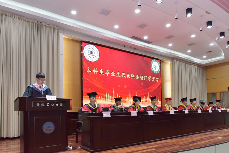 2023届研究生代表汪雨航、本科生代表张兆扬回顾了在校学习、生活的感受,表达了对母校的美好祝愿和对老师的感恩之情。教师代表徐刚寄语毕业生突破自我,再接再厉,取得更大的成绩,为母校争光添彩。