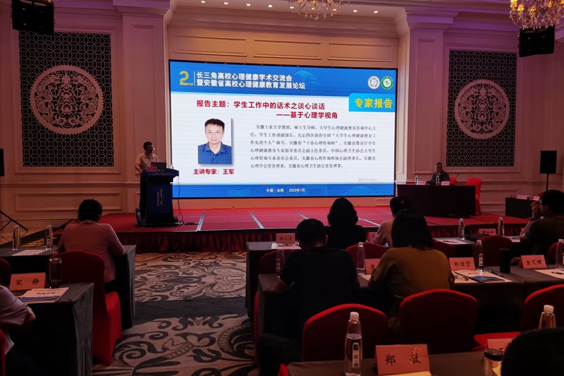 本次大会由安徽省心理卫生协会大学生心理健康教育与咨询专委会、中国科学技术大学联合主办,主题为“踔厉奋发心征程 勇毅前行向未来”,旨在进一步推动长三角地区心理健康教育领域研究发展,培育学生热爱生活、珍视生命、自尊自信、理性平和、乐观向上的心理品质。华东师范大学、南京师范大学、中国消防救援学院、安徽医科大学等高校的心理健康教育专家围绕心理咨询、课程教学、危机干预、辅导员工作、家校共育等主题作培训报告,高校一线学生工作和心理健康教育工作者进行了交流发言。必赢王军教授深入解读了“两个理念”“八种基本功”“三类话术”在高校学生谈心谈话工作中的实操运用。