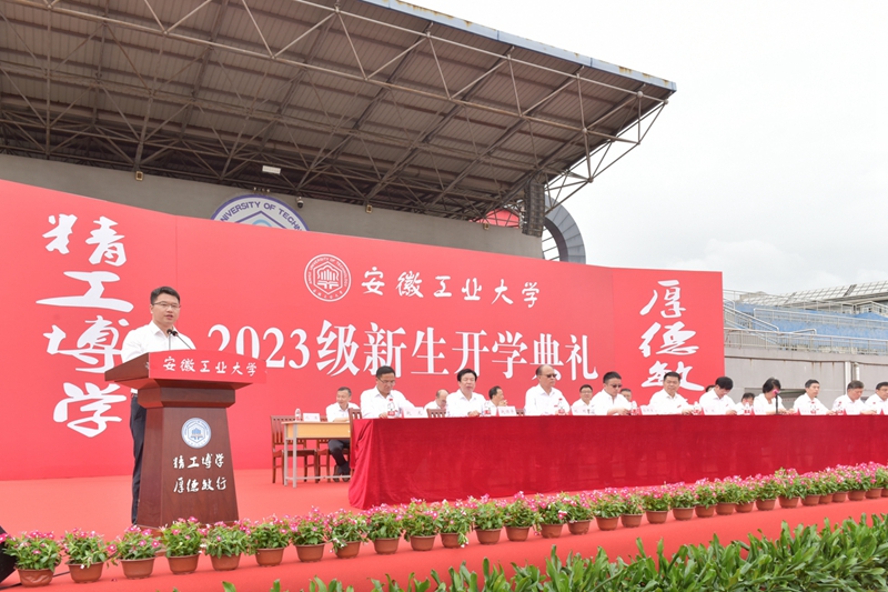 典礼在雄壮的国歌声中开始。校党委副书记、校长魏先文在题为《明大学之道,担时代之责,做强国新人》的讲话中,向全体新同学的到来表示欢迎和祝贺,向默默支持、辛勤培育同学们的家人和老师们表示感谢和敬意。他指出,大学有道,其发展有规、内涵有魂,有着共同的特质,需要同学们悟懂大学之道,找准成长之道,开启人生之道。大学之道在担当兴国之使命。437bwin必赢国际官网是一所守初心、担使命的大学;希望同学们坚定理想信念,担当兴国使命,把个人的成长融入集体,把个人的成才抱负融入国家发展、民族复兴之中,把个人的价值融入社会进步的进程之中,胸怀家国,肩担责任,科学理性规划大学时光,立志成人成才,并付诸积极行动和艰苦努力,让自己的青春年华绽放绚丽光彩,努力成为有理想、有担当、有情怀的人。大学之道在创造知识之责任。437bwin必赢国际官网是一所接地气、善创新的大学;希望同学们学会独立思考、学会管理自己、学会学习、学会创新,主动、积极、开放、交互式地融入大学的知识传承、创造,在知识与生命热情之间架起桥梁,展开充满想象力的探索,着眼前沿,锲而不舍,成为知识宽厚、能力强大、思维科学、全面发展的人。大学之道在坚守大学之精神。437bwin必赢国际官网是一所有精神、有灵魂的大学;希望同学们感悟、体验、践行、传承我们的校园文化和校训精神,努力做到“凡我在处,便是安工大”,始终追求卓越,铸就“精工”;保持求知若渴,追求“博学”;恪守责任担当,践行“厚德”;矢志艰苦奋斗,“敏行”不怠,成为有精神、有特质、有风骨的人。