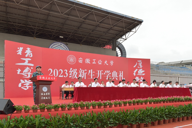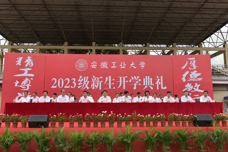 全体在校党政领导陆林、魏先文、顾明言、刘明、水恒福,校友代表、2006届工业工程专业校友、江苏艺特新能源科技有限公司董事长孙照生,以及校党委常委,相关职能部门负责人,各学院党委书记、院长、党委副书记、新生辅导员,教师、在校生代表和2023级全体研究生、本科生共8200余人参加开学典礼。典礼由校党委常委、副校长顾明言主持。