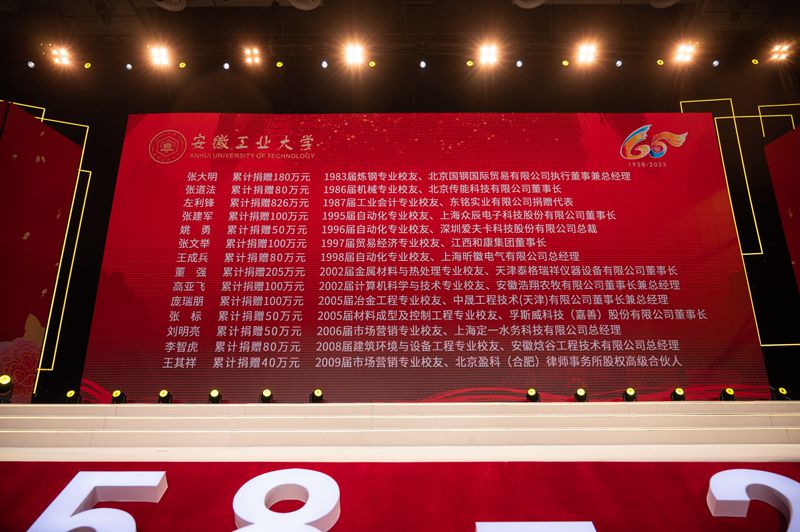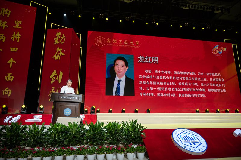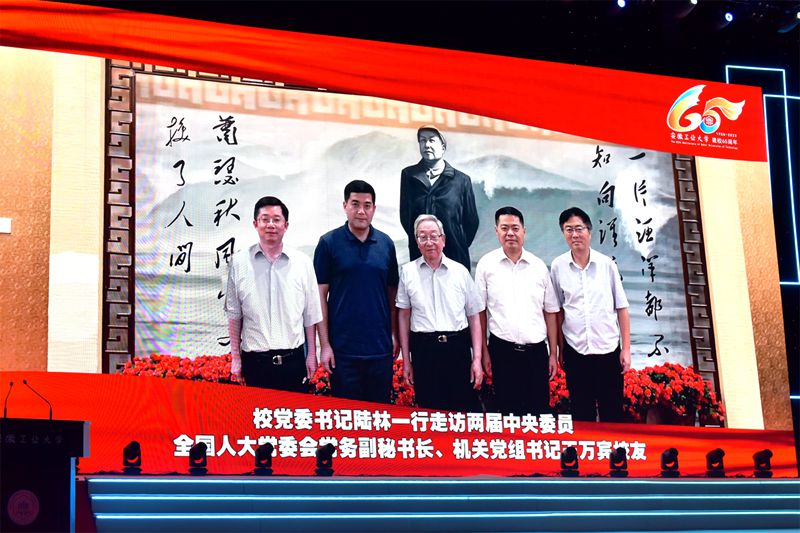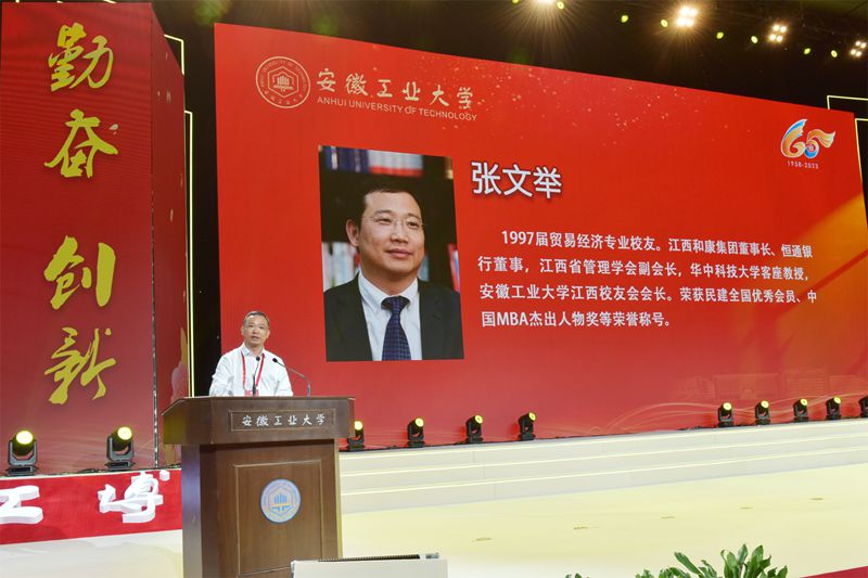 中共安徽省委候补委员、校党委书记陆林代表学校党政和全体师生员工,向莅临现场的各位领导、嘉宾、校友、师生以及相聚云端的海内外广大校友、全体安工大人致以诚挚问候和美好祝愿,向65年来为学校建设发展作出贡献的各位前辈先贤,向关心支持学校事业进步的各级领导、各界朋友表示衷心感谢和崇高敬意。陆林指出,回望安工大65年筚路蓝缕、奔腾不息的发展历程,我们始终听从党的召唤,以工业强国、振兴中华为己任,走出一条爱党报国之路、一条弘文励教之路、一条扬优显特之路。65年来,各级领导、海内外校友、社会各界和广大师生的重视、关心、支持与热爱,共同汇聚成最深厚、最真挚、最纯粹的工大情,这份情饱含各级组织的关心期待,饱含万千校友的深切感念,饱含代代师生的热切期盼。建校65年,我们站上一个新起点、担起一份新使命,我们的办学理念更加深入人心,按照坚守信念、坚持梦想、坚定信心、坚韧不拔的总体要求,聚焦培育时代新人和服务重大需求,奋力建设国内知名特色高水平大学;我们的攻坚目标更加鼓舞人心,正打造改革攻坚升级版,力争实现党建引领示范、学科建设升级、拔尖人才培养、师资队伍筑峰、科技创新进阶、资源配置优化、开放办学赋能、办学活力激发的“八大突破”,为学校未来发展打下更加坚实的基础;我们的发展蓝图更加振奋人心,到2025年基本建成特色高水平大学,到2035年建成国内知名特色高水平大学,到2049年建成有国际影响的特色高水平大学。陆林表示,全校上下将万众一心、锚定目标、矢志奋斗,在内涵式高质量发展的新实践中再赢新荣耀、再创新奇迹,为强国建设、民族复兴伟业作出新的更大贡献。