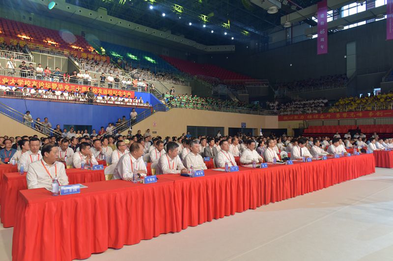 上午10时,437bwin必赢国际官网校友论坛暨毕业三十周年校友返校纪念大会在秀山校区体育馆隆重举行。中共第十七届、十八届中央委员,第十届、十一届全国人大常委会常务副秘书长、机关党组书记王万宾校友发来贺信。马鞍山市委书记袁方,校友朱文浩少将,中国十七冶集团公司党委书记、董事长喻世功校友,马鞍山市委常委、市委秘书长方文,马鞍山市委常委、市委宣传部部长陈永红校友,宝武集团总法律顾问兼法务与合规部部长蒋育翔校友,马鞍山市政协副主席𧨿圣国校友,马鞍山市政协副主席郑啸,中国五冶集团有限公司党委委员、副总经理、总工程师代小强,武汉工程职业技术学院党委书记、宝武集团工会副主席、宝钢教育基金会秘书长陈英颖校友,南京钢铁股份有限公司副董事长、董事、总裁、南京校友会会长祝瑞荣校友,宝武马钢集团党委常委、马钢股份公司副总经理伏明校友,宝武集团华宝(上海)股权投资基金管理有限公司董事、总裁贾璐校友,北京化工大学教授、博士生导师、校学术委员会副主任邱介山校友,复旦大学教授、博士生导师孙大林校友,以及马鞍山市相关部门和区县负责人,政产学研合作单位负责人,全国各地校友会会长、优秀校友代表、毕业三十周年返校校友代表等应邀出席大会。历任校领导,校领导班子成员,校党委常委,校党委委员、纪委委员,全体中层干部,今年退出中层正职领导岗位的干部,省市两级人大代表和政协委员,民主党派负责人,师生代表等参加大会。大会由校党委常委、副校长顾明言主持。