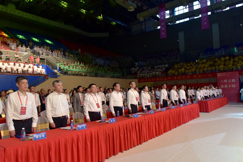 在场领导、嘉宾、校友和师生还欣赏了由著名诗人欧震创作、学生带来的诗朗诵《和新时代一起奔腾、一起飞跃》。大会伴着激昂的校歌结束。
