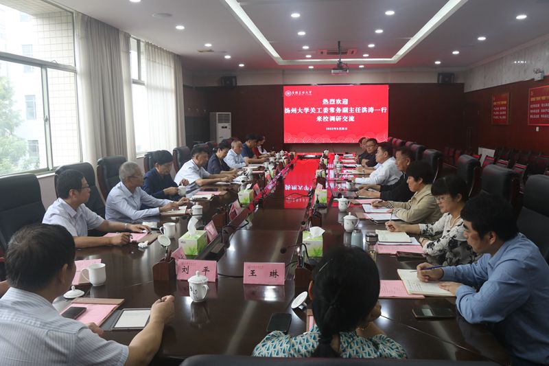 9月25日下午,扬州大学关工委常务副主任洪涛一行来校调研。校党委书记陆林出席,必赢机关党委、离退休工作处、关工委、后勤处等部门负责人参加。