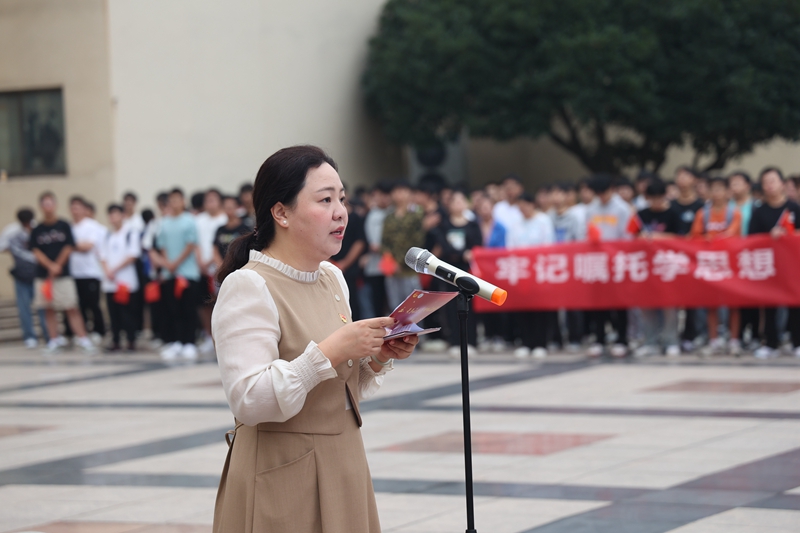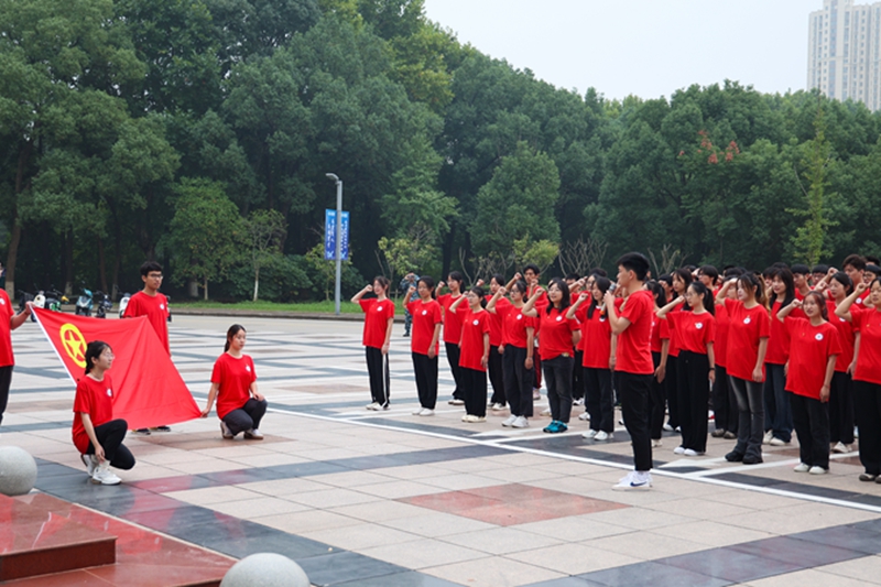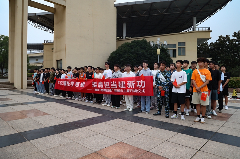 9月28日,必赢在秀山校区教学楼广场举行“牢记嘱托学思想、挺膺担当建新功——国旗下的微团课”迎国庆主题升旗仪式。安全保卫部、团委、马克思主义学院、机械工程学院相关人员以及2023年新入团学生共400余人参加活动。