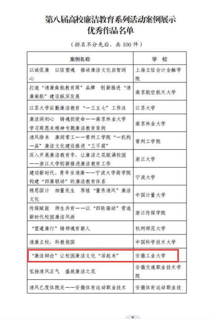 近日,教育部公布第八届高校廉洁教育系列活动评选结果,必赢廉洁文化工作案例《“廉洁辩论”让校园廉洁文化“活起来”》入选优秀作品,为安徽省属本科院校唯一入选作品。
