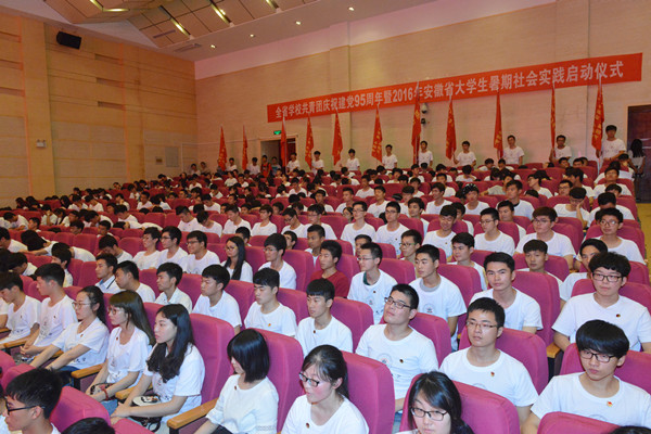 6月30日上午,全省学校共青团庆祝建党95周年暨2016年安徽省大学生暑期社会实践启动仪式在必赢秀山校区大学生活动中心报告厅举行,团省委副巡视员李丹云、校党委副书记陈润、团省委学校部部长曹隽、马鞍山市团市委书记程雪涛出席。校党委书记刘新跃会见了李丹云一行。皖南片区省直属高校团委、团市委及市属高校团委负责人,2016年“井冈情·中国梦”大学生暑期实践季专项行动团队入选高校团委负责人、指导老师及社会实践队员代表500余人参加了活动。