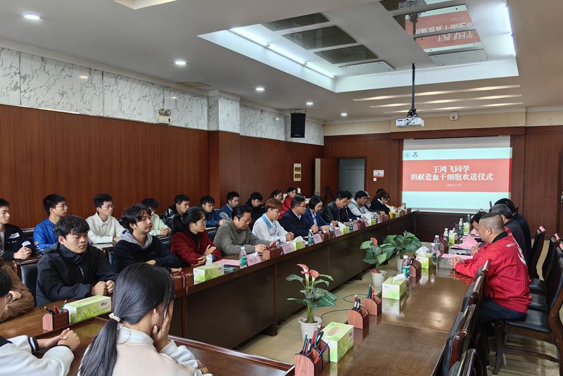 11月10日上午,学校在佳山校区学术会议中心三楼第四会议室举行机械工程学院王鸿飞同学捐献造血干细胞欢送仪式。马鞍山市红十字会、市中心血站、市红十字无偿献血志愿者协会负责人,党委宣传部、学生工作部、团委、机械工程学院负责人,师生代表和媒体记者参加欢送仪式。