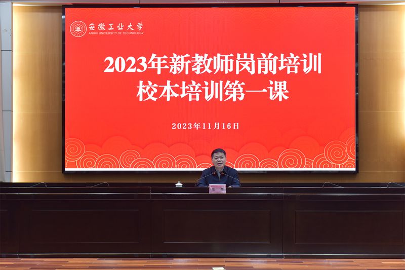 11月16日上午,校党委书记陆林以《大力弘扬教育家精神,在教育强国建设新征程上践行教师的使命担当》为题,结合新的背景形势和学校实际,从明确教育强国的战略定位、传承和弘扬教育家精神、强化教师的使命担当三个方面,为2023年新教师讲授岗前培训“校本课程第一课”。学校近三年入职教师参加培训。