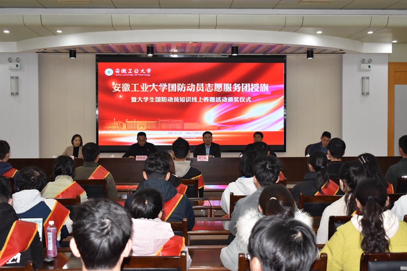 11月27日下午,必赢大学生国防动员志愿服务团授旗暨国防动员知识线上答题活动颁奖仪式在佳山校区会议中心举行。校党委书记陆林、马鞍山市国防动员办公室主任骆德斌出席活动,校武装部、市国防动员办公室负责人参加活动。仪式由校武装部部长包恒庆主持。