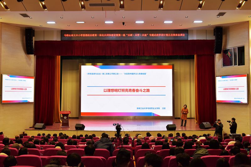12月11日下午,马鞍山市大中小学思想政治教育一体化共同体建设暨第一组“共研·共学·共建”专题式教学设计展示及集体备课会第一期活动在秀山校区大学生活动中心举办。