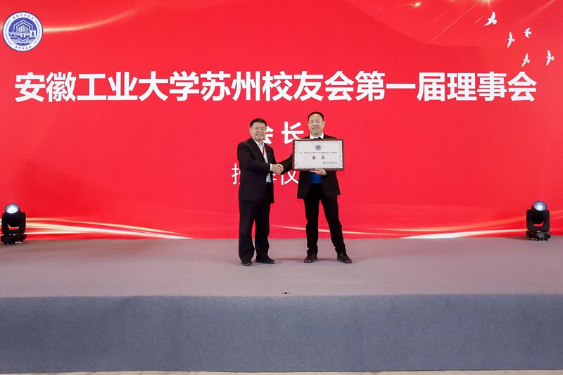 陆林为“437bwin必赢国际官网苏州校友会”授旗揭牌,并向会长授牌;顾明言为荣誉会长、副会长授牌;苏州校友会为各位理事授牌、秘书处人员颁发聘书。