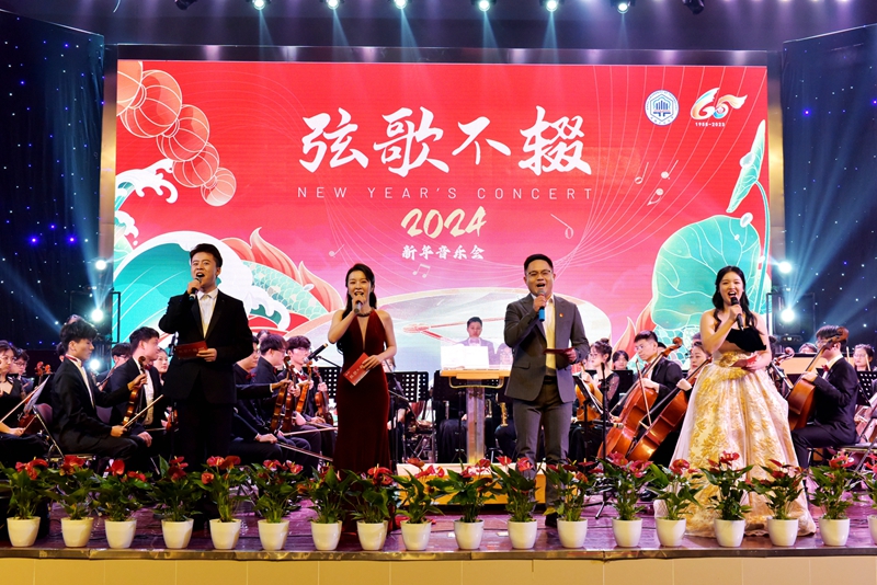 12月28日晚,由艺术与设计学院承办,党办校办、党委宣传(统战)部、团委协办的美育教学成果展暨“弦歌不辍”2024新年音乐会在秀山校区大学生活动中心浓情上演。校党委书记陆林,学校相关职能部门、学院党政负责人、师生代表,马鞍山市公安局相关负责人共同观看音乐会。