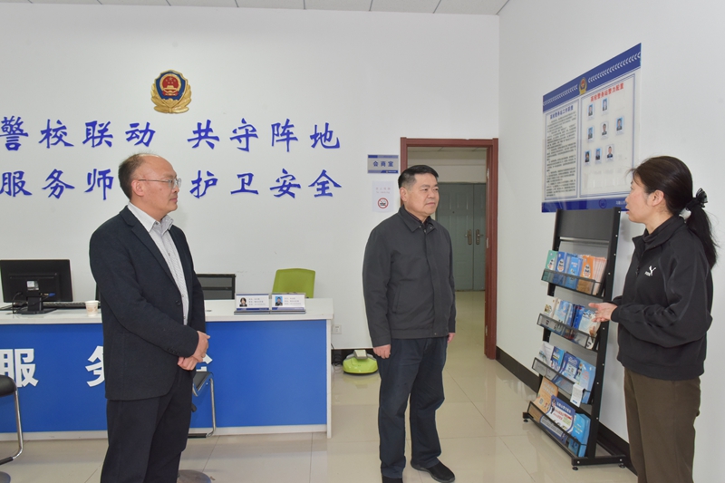 陆林一行首先来到校园警务站,与值班民警亲切交谈,感谢公安部门一直以来的辛苦付出,为校园安全筑起一道坚固的防线,希望校园警务站把安全工作做深、做细、做实,成为师生身边的安全卫士,以高水平安全保障学校高质量发展。陆林强调,要切实做好校园电动自行车管理工作,及时解决电动自行车占用、堵塞疏散消防通道问题,因地制宜规划车位,杜绝乱停乱放。