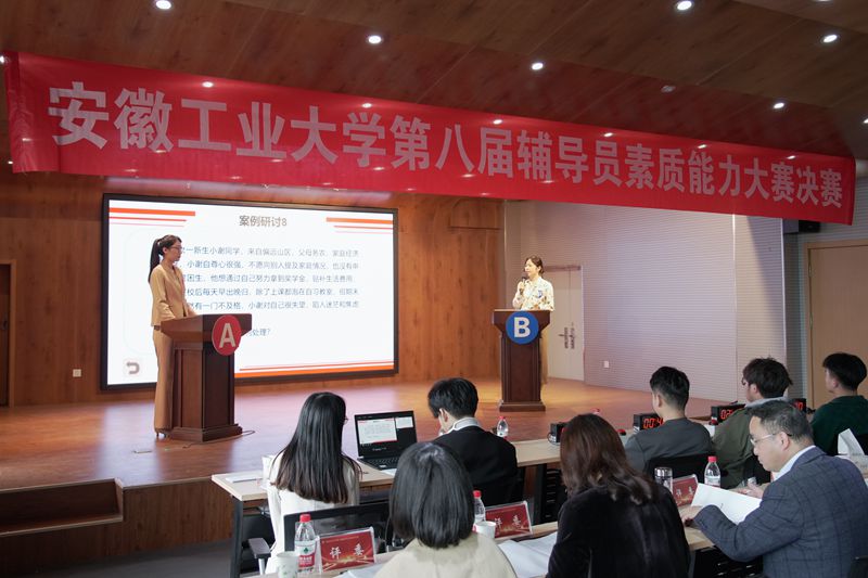 本次辅导员素质能力大赛分为初赛和决赛两个阶段。初赛阶段为笔试环节,学校全体一线专职辅导员参加;决赛阶段分为案例研讨、谈心谈话两个环节,案例研讨主要考察辅导员综合运用理论分析问题、研判问题、解决问题的能力,谈心谈话主要考察辅导员对学生特征、学生成长成才规律的了解把握程度,对学生的教育引导能力、解决理论困惑和实际问题的能力等。