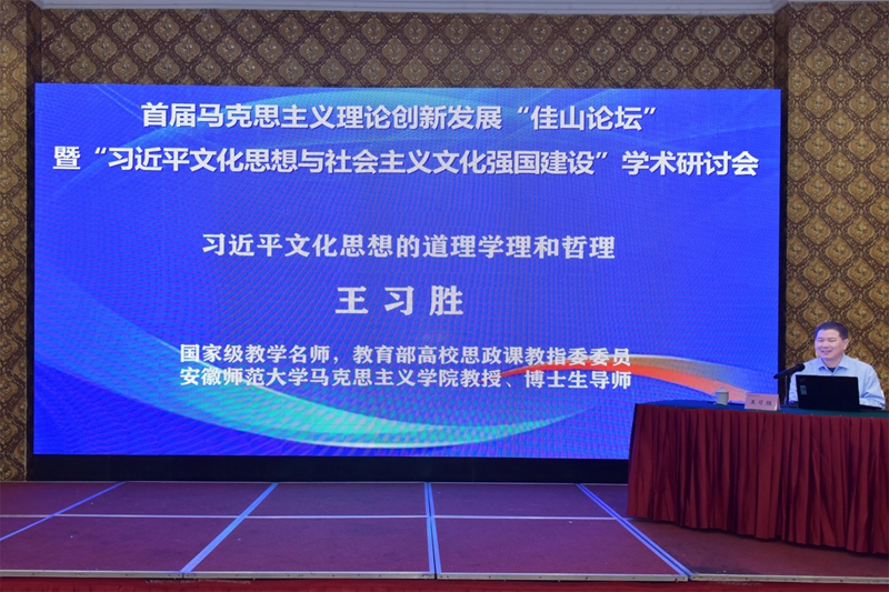 在主题报告环节,中国社会科学院哲学所副所长、博士生导师刘志明研究员,以“新时代文化建设的伟大成就”为题,从思想引领优势凸显、文化自信愈加坚定、人民精神文化生活更加丰富、中华文化影响力持续扩大、文化治理体系日趋成熟等五个层面,总结了新时代以来在文化建设方面取得的伟大成就。国家级教学名师、教育部“思想道德与法治”分教学指导委员会副主任委员、同济大学马克思主义学院博士生导师陈大文教授以“我国社会主义法治文化建设的结构性进路”为题,针对推进社会主义法治文化建设进程中存在的一些短板,以方向性、基础性和保障性三方面结构性进路,探索加强法治文化建设的逻辑结构框架。国家级教学名师、教育部高校思政课教指委委员、安徽师范大学马克思主义学院博士生导师王习胜教授以“习近平文化思想的道理学理和哲理”为题,具体解读和阐释了习近平文化思想从道理层面、学理层面和哲理层面所包涵的理论意蕴和丰富内涵,以及习近平文化思想洞察文化建设本质的哲学智慧。