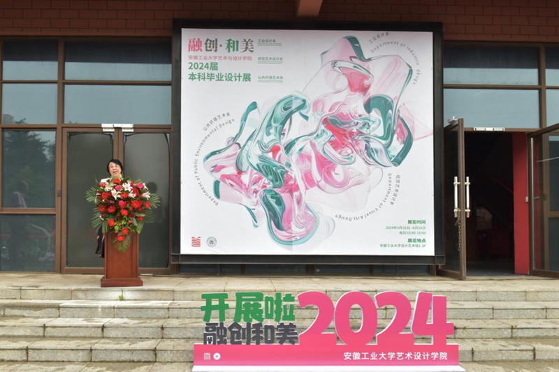 5月31日上午,艺术与设计学院2024届本科生毕业设计作品展在秀山校区设计艺术馆广场盛装开展。校党委常委、副校长顾明言,马鞍山市委宣传部副部长、市文明办主任陈学明,休宁县人民政府副县长李文喜,“当涂民歌”国家级非遗传承人陶小妹,北京小米科技有限公司小米生态链设计部工业设计负责人、必赢工业设计专业2004届校友谢迎春,南京大美天第文旅投资集团有限公司副总裁孔德银等26家企业代表出席仪式。党委宣传部、研究生工作部、团委、教务处、国际交流与合作处、信息化处、创新创业学院等部门负责人以及艺术与设计学院师生代表参加仪式。