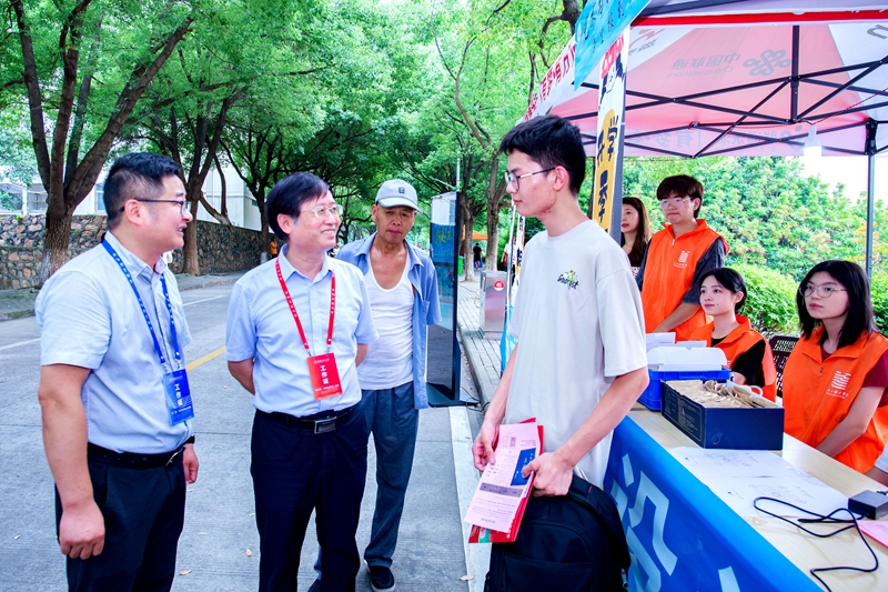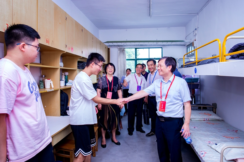 迎新期间,校党委书记陆林,校党委副书记、校长魏先文,校党委常委、副校长顾明言等深入两校区迎新报到点、学生宿舍、学生食堂检查指导,慰问迎新工作人员和学生志愿者,详细了解新生报到情况。校领导与新生及家长亲切交谈,了解新生报到情况和入学适应情况,勉励新生尽快熟悉学校环境,以饱满的热情和良好的精神状态投入到大学生活中。陆林、魏先文、顾明言深入化学与化工学院、商学院、研究生院等新生宿舍走访慰问,了解他们家庭、学习、生活情况,赠予书籍、书包与保温杯等开学礼物,勉励他们珍惜韶华、勤奋学习、勇敢逐梦。