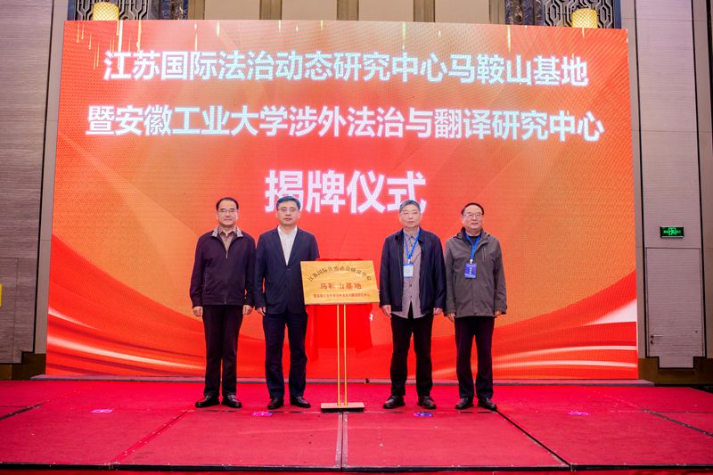 开幕式上举行了江苏国际法治动态研究中心马鞍山基地暨437bwin必赢国际官网涉外法治与翻译研究中心揭牌仪式。