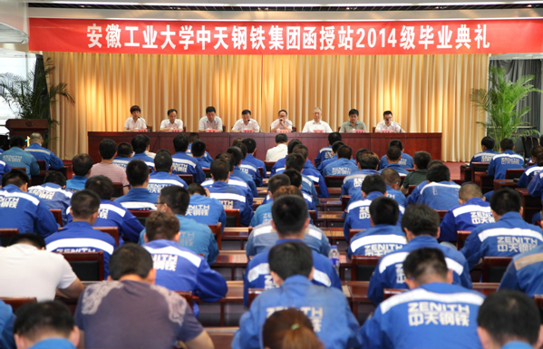 7月21日上午,中天钢铁集团举行了安工大中天函授站2016届毕业典礼,中天集团执行董事、副总裁赵金涛,中天集团副总裁王建伟、刘宇,总经理助理耿冬雷,副校长葛芦生,继续教育学院相关负责人出席活动。