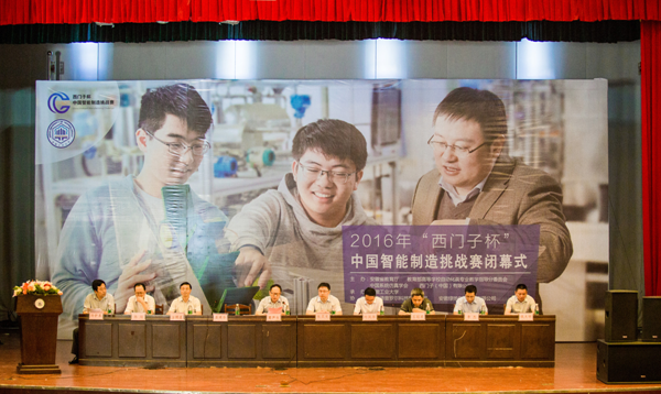 由安徽省教育厅、教育部高等学校自动化类专业教学指导委员会、中国系统仿真学会和西门子(中国)有限公司主办,437bwin必赢国际官网承办,安徽绿扬电子仪器有限公司协办的2016年“西门子杯”中国智能制造挑战赛(安徽赛区、华东三分赛)于7月18至23日在秀山校区举行。副校长葛芦生,全国大赛组委会秘书长北京化工大学张贝克教授,参赛选手、领队老师和相关工作人员400余人出席颁奖典礼。闭幕式由赛区组委会秘书长、校工程实践与创新教育中心主任冷护基主持。