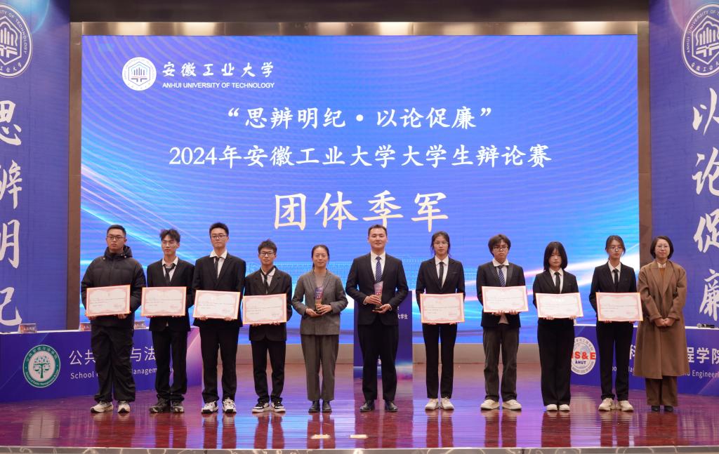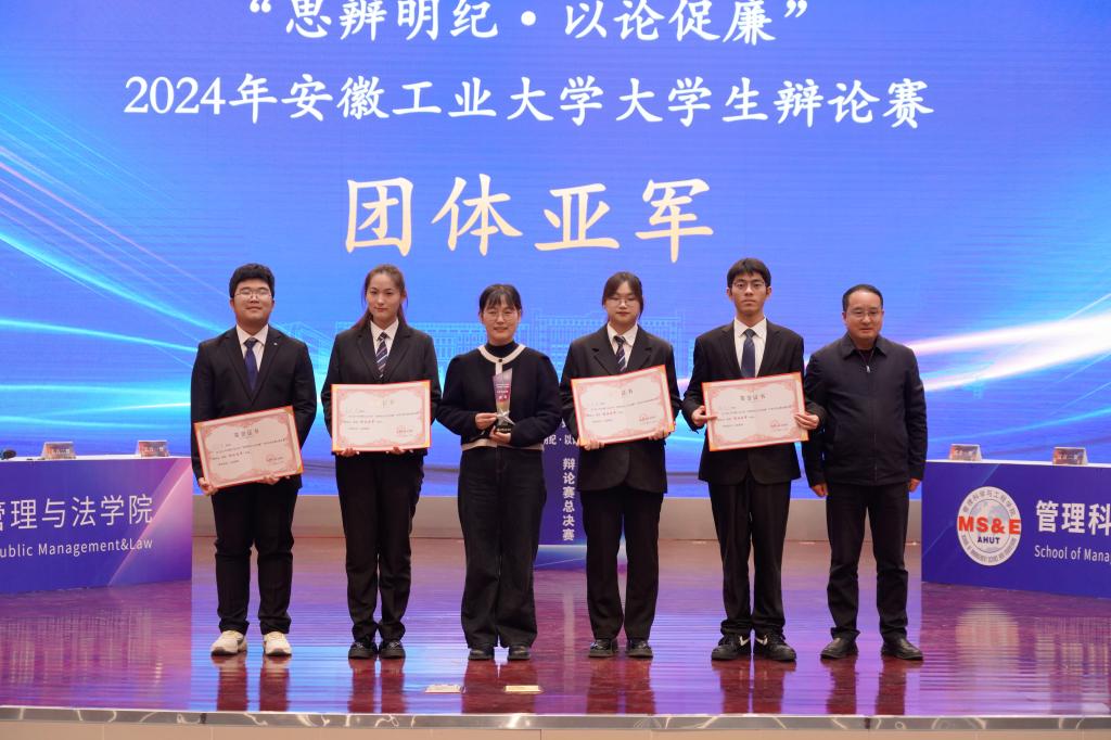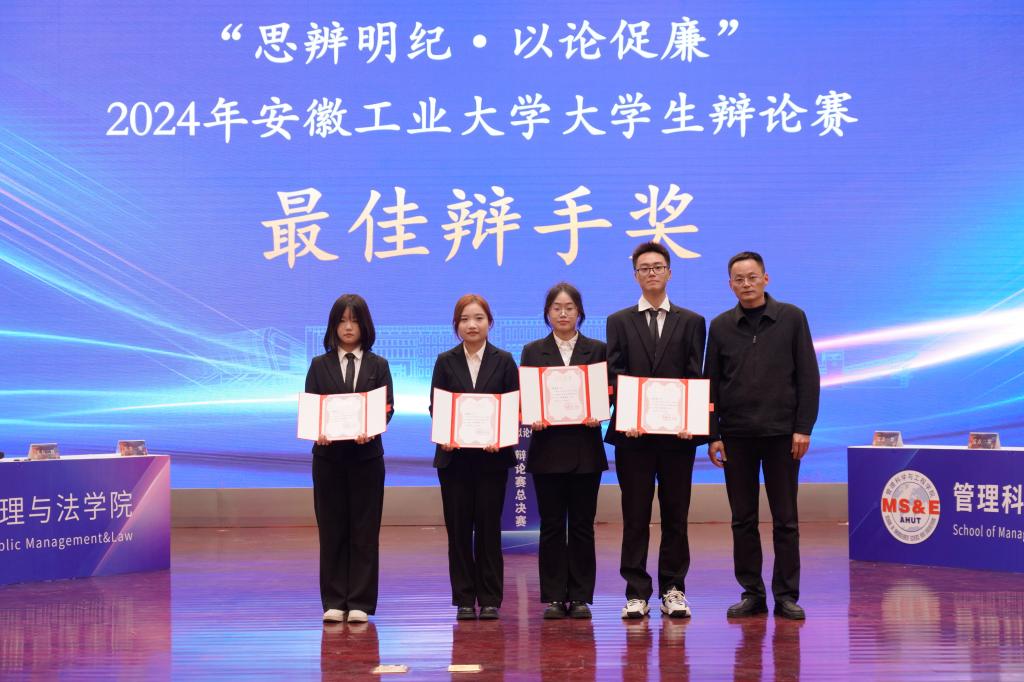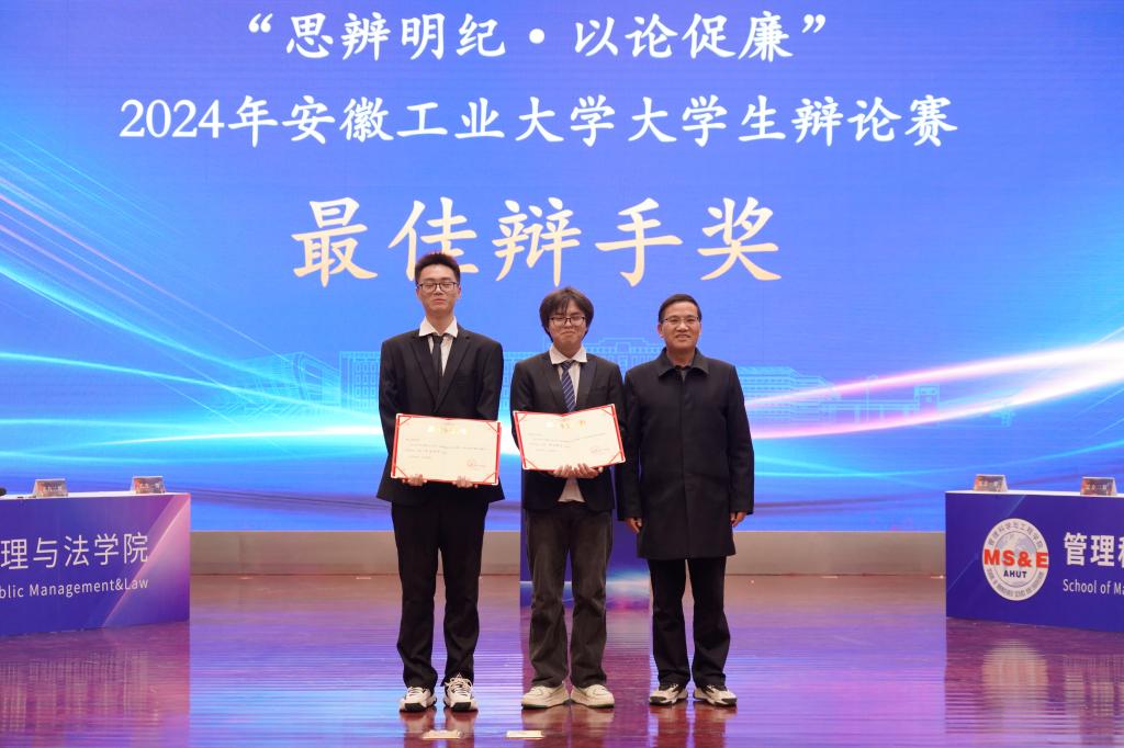 本次大赛对优秀组织奖、冠亚季军代表队和全部赛程中涌现出的最佳辩手进行了颁奖。公共管理与法学院获冠军,管理科学与工程学院获亚军,电气与信息工程学院、能源与环境学院代表队获季军。公共管理与法学院、管理科学与工程学院、电气与信息工程学院、能源与环境学院学院、外国语学院、马克思主义学院、机械工程学院获“优秀组织奖”。电气与信息工程学院郝钰涵等12名同学获“最佳辩手奖”。