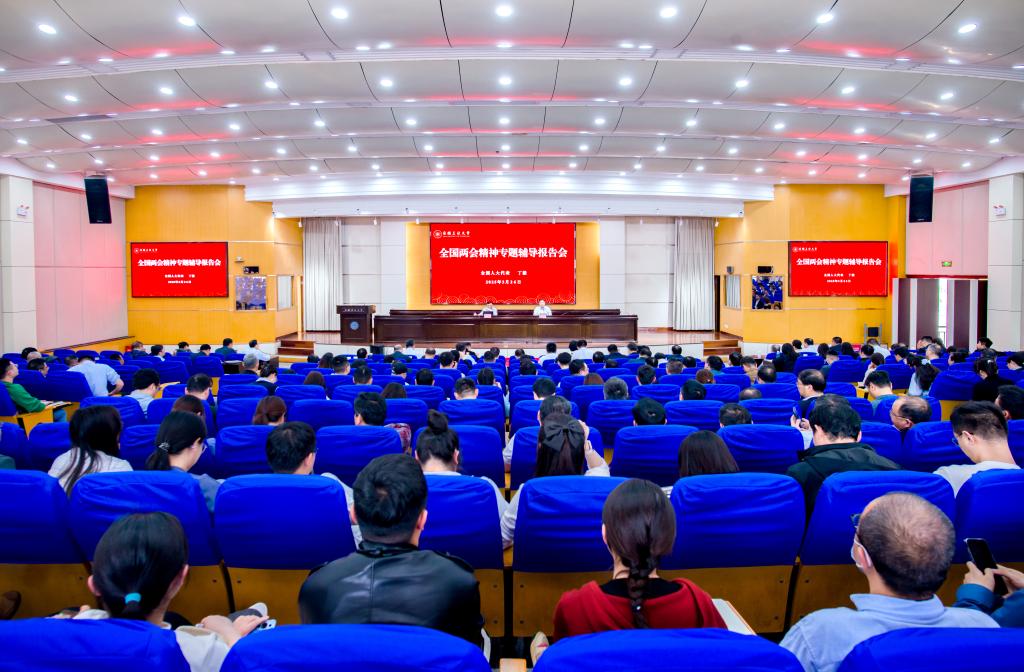 3月26日下午,校党委理论学习中心组召开2025年第三次学习(扩大)会暨全国两会精神专题辅导报告会,根据市委统一安排,邀请全国人大代表丁毅来校作专题辅导报告。校领导、校党委常委、各院级党组织书记、全体中层干部、师生党支部书记代表、学生代表现场聆听。校党委书记陆林主持报告会。