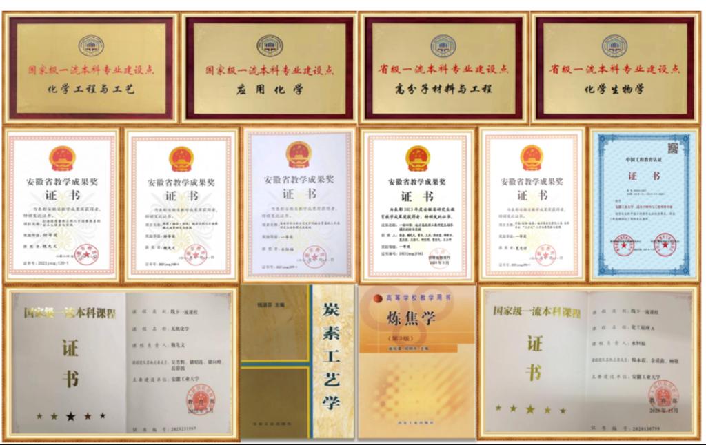 学院获批国家级一流本科专业建设点2个和省级一流本科专业建设点2个,工科专业通过工程教育认证2个;获批国家级一流本科课程2门,编写教材入选“冶金专业教材和工具书经典传承国际传播工程”首批立项书目2本;获安徽省教学成果奖特等奖2项、一等奖3项。