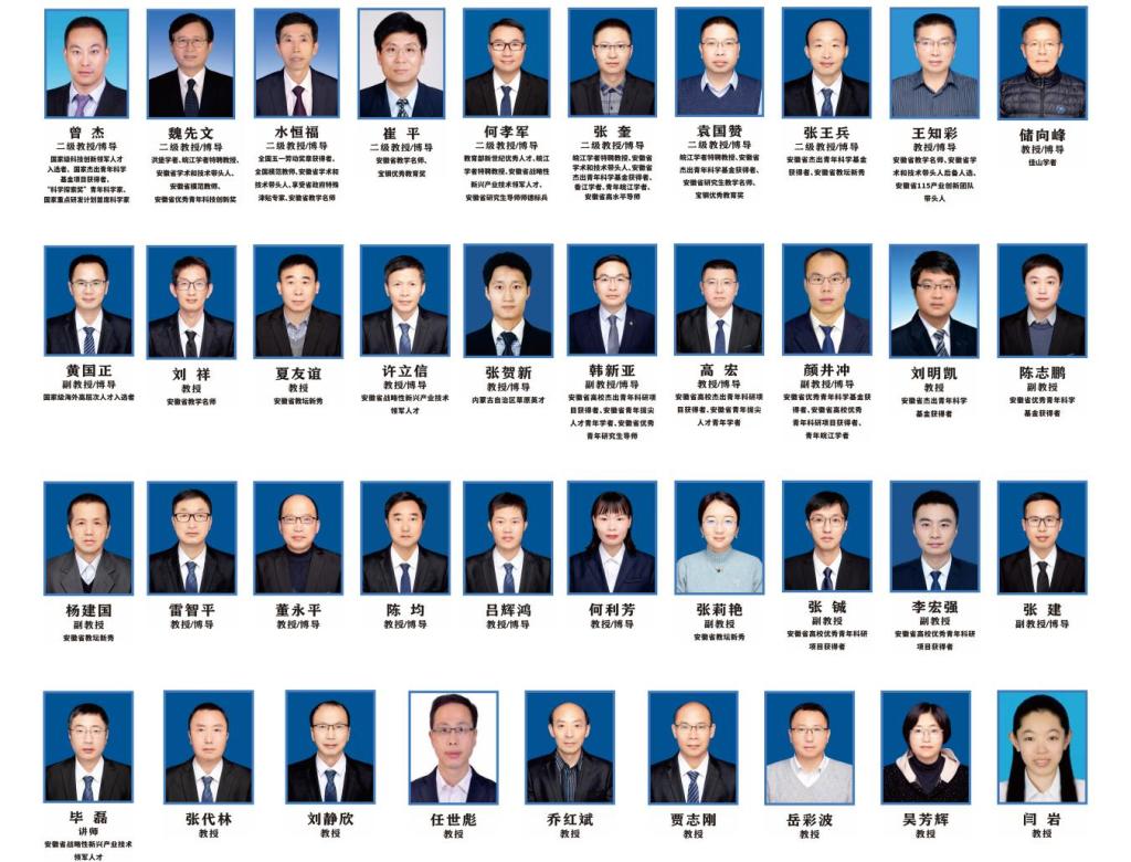 学院专业教师博士化率达95%以上,拥有国家杰出青年科学基金项目获得者、国家重点研发计划首席科学家等国家级人才4人次,安徽省杰出青年基金获得者、安徽省学术和技术带头人等省级人才47人次,省级科研团队3个;学院教师荣获发展中国家科学院化学奖1人、第五届科学探索奖1人、第十二届中国化学会-巴斯夫公司青年知识创新奖1人(全国仅4人)和第四届青山科技奖1人;入选全球前2%顶尖科学家榜单、“中国高被引学者”榜单7人。科研反哺教学效果明显,学院获批煤焦化方向专业课程、无机化学和工程化学省级教学团队3个;学院教师荣获全国模范教师称号1人、全国五一劳动奖章1人、宝钢教育奖4人和省校两级教学名师、教坛新秀9人。