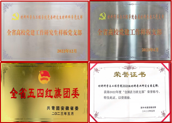 党建引领结硕果。近年来,学院贯彻落实新时代党的建设总要求,党建工作持续扎实推进。2022年,学院团委获安徽省五四红旗团委,材料专业研究生20级团支部成功入选全国高校“活力团支部”最具组织力TOP100榜,学生获大学生讲思政课比赛皖南片区二等奖1人,辅导员入选教育部全国高校学习宣传党的二十大精神师生巡讲团1人。2023年,金属材料工程系教工党支部获批省级样板党支部,获得省高校思想政治工作拔尖人才和中青年支持计划项目2项。2024年,“材”聚青春代表队在第四届长三角地区高校“新时代•中国说”大学生讲师邀请赛决赛中荣获一等奖。