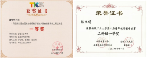 教学改革出亮点。近五年,学院树立教学标杆的措施取得良好效果,讲课比赛持续获得突破。裴立宅教授获第四届全国高校教师教学创新大赛安徽赛区正高组一等奖;陈立明博士在第三届全国高校无机非金属材料青年教师讲课比赛中获一等奖,获校第十届青年教师教学竞赛工科组一等奖;学院获省级教学研究改革项目14项(其中含重大项目1项,重点项目7项);以第一单位获安徽省本科教学成果特等奖、一等奖和二等奖各1项。