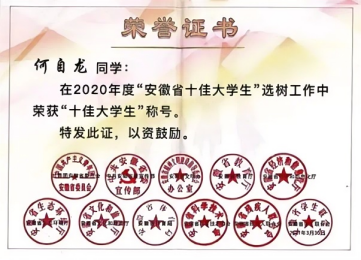 党建引领育人出新成果。学院三全育人成果被人民网报道,学生获安徽省十佳大学生荣誉称号2人,高辉辉获中国大学生自强之星提名奖,何自龙获安徽省“大学生年度人物”。3名学生保送至北京大学继续深造,本科毕业生考研录取率均在30%以上,专业最高录取率超过53%,均居全校前列。