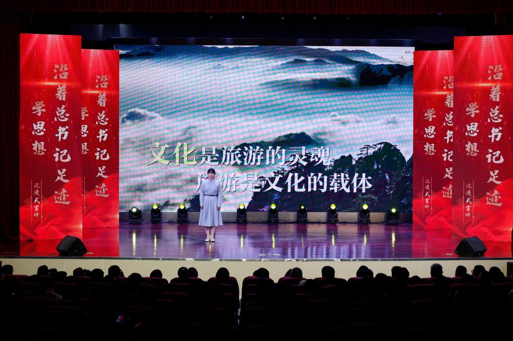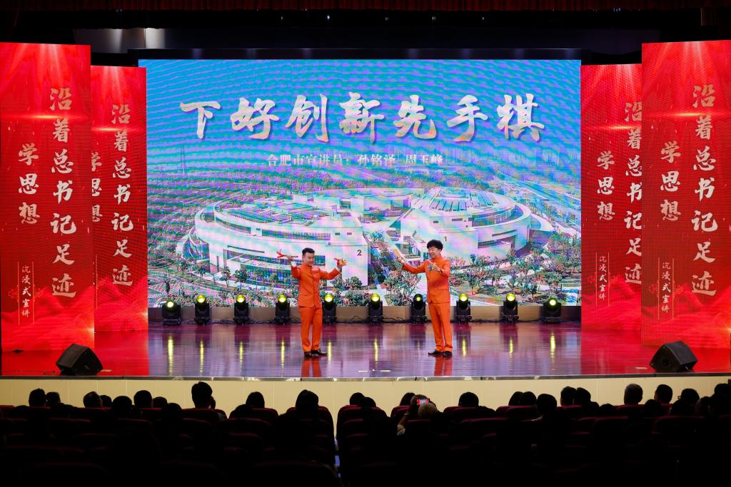 作为省内地市巡讲首站,本次活动紧紧围绕习近平总书记考察安徽重要讲话精神,从“下好创新先手棋”“勇立潮头开新篇”“城乡融合绘宏图”“诗与远方交响曲”“人生能有几回搏”五个方面,以情景再现、故事讲述、现场互动、对话访谈等丰富多元的形式展开。宣讲员们通过结合合肥创新发展实践、回顾小岗村改革发展历程、讲述阜阳市和六安市乡村发展故事、传递传统文化魅力等内容,将深入学习贯彻习近平新时代中国特色社会主义思想与安徽发展实际紧密结合,带领师生深刻感悟思想的真理力量和实践伟力,让党的创新理论“声”入人心,真正实现了宣讲内容“沾泥土、带露珠、冒热气”。