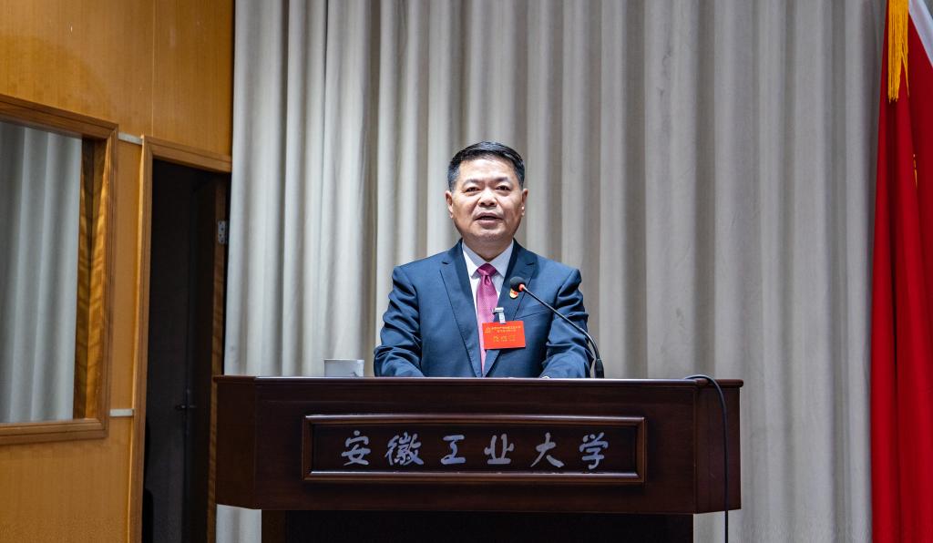 校党委书记陆林代表中国共产党437bwin必赢国际官网第四届委员会向大会作题为《凝心聚力 琢玉锻钢 守正创新 谋变图强 为建设国内一流特色高水平大学而不懈奋斗》的报告。