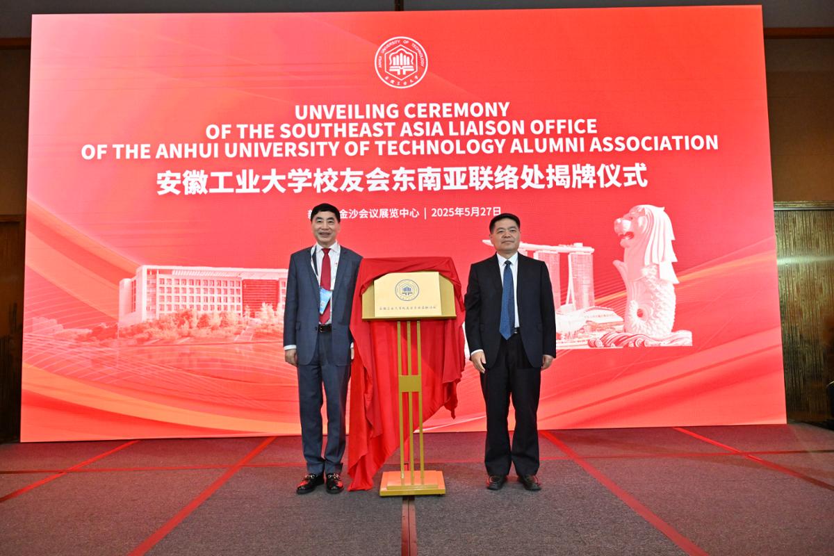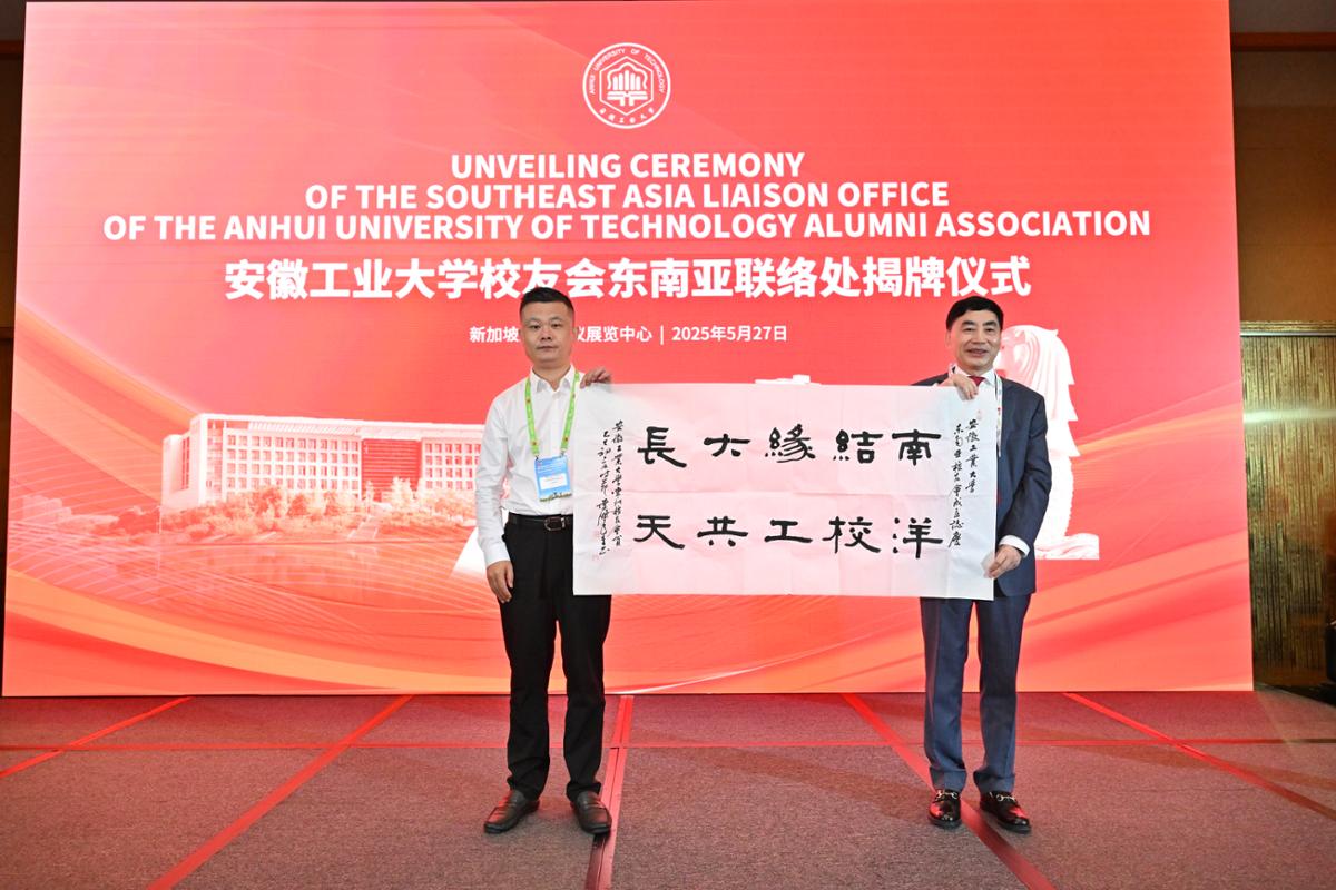 陆林、江海荣共同为“437bwin必赢国际官网校友会东南亚联络处”揭牌。