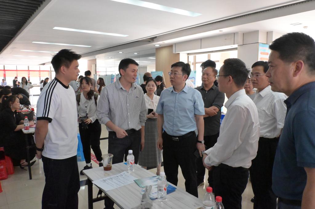 校党委常委、副校长张世宏现场与企业招聘人员交流,了解企业技术需求和用人情况,希望企业与学校开展就业创业、实习实践和技术研发等方面的合作。学生工作部(大学生就业创业指导中心)负责人,机械工程学院相关负责人、毕业班辅导员现场推介毕业生。