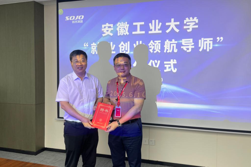 期间,学校就人才培养、实习实践基地建设、产学研合作等方面与企业进行了深入交流。王俊代表学校为双杰电气合肥有限公司总经理殷华新、人力资源总经理洪峰颁发了“就业创业领航导师”聘书,为合肥维信诺科技有限公司授牌“大学生就业基地”,并签订了人才培养与就业基地建设合作协议。(撰稿:杨恒基 审核:孔洋波 丁忠利 张苒 王菁)