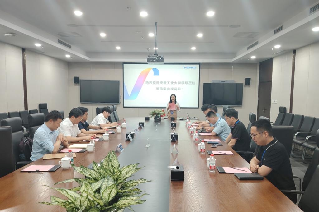 王俊介绍了学校的发展历程、学科专业特色、人才培养与就业创业等方面情况,他指出,学校始终紧跟国家和时代对人才培养的需求,不断丰富和完善人才培养体系,主动服务国家工业现代化和安徽“三地一区”建设。学校专业设置与企业的人才需求高度契合,希望双方在人才培养、科研合作、实习实训基地建设等方面建立更紧密、更深层次的合作关系,实现学校、企业、学生三方共赢。
