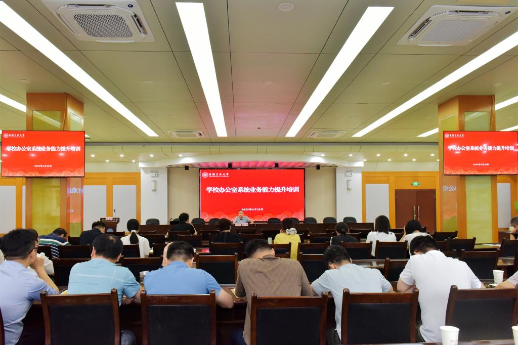 为进一步规范工作流程、严明工作纪律、夯实业务基础,切实提升学校办公室系统“三服务”能力水平,6月20日下午,学校组织召开全校办公室系统业务能力提升专题培训会。学校各院(部)、机关各部门、校直各单位办公室主任、党委秘书、涉密工作人员共80余人参加会议。
