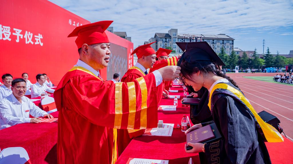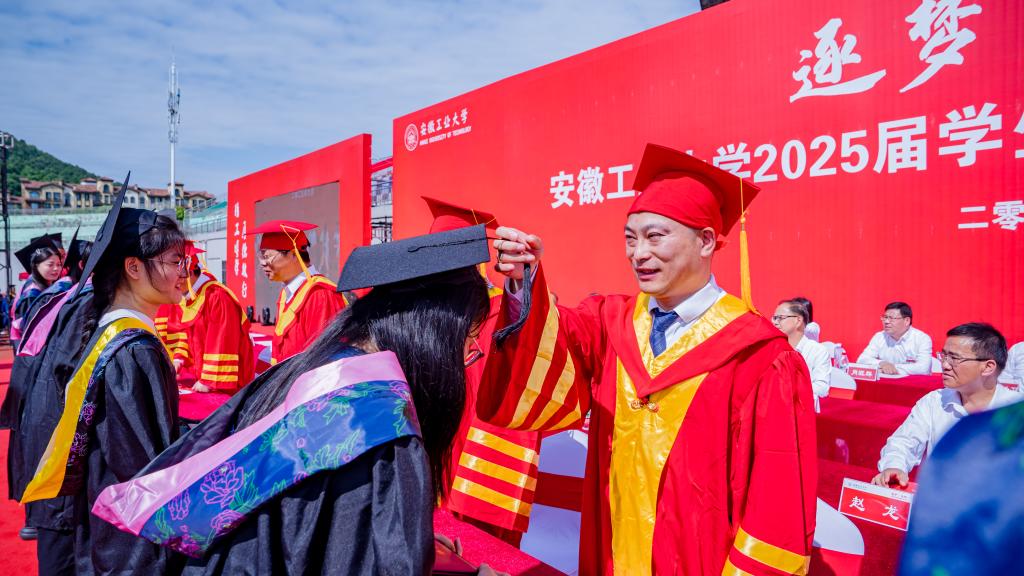 6月24日,必赢2025届学生毕业典礼暨学位授予仪式在秀山校区田径场举行。校领导陆林、曾杰、王俊、郑啸、吴春雷、闵凡飞、郑利平、张世宏、罗坤,环境监测专业1994届校友、北京建龙重工集团公司能源环保总监芮义斌出席。2025届全体毕业生,校党委常委,相关职能部门负责人,各学院党委书记、院长、学生工作负责人、毕业班辅导员,毕业生家长、班主任、教师代表,后勤、安保工作人员代表共5000余人参加。典礼由校党委副书记王俊主持。