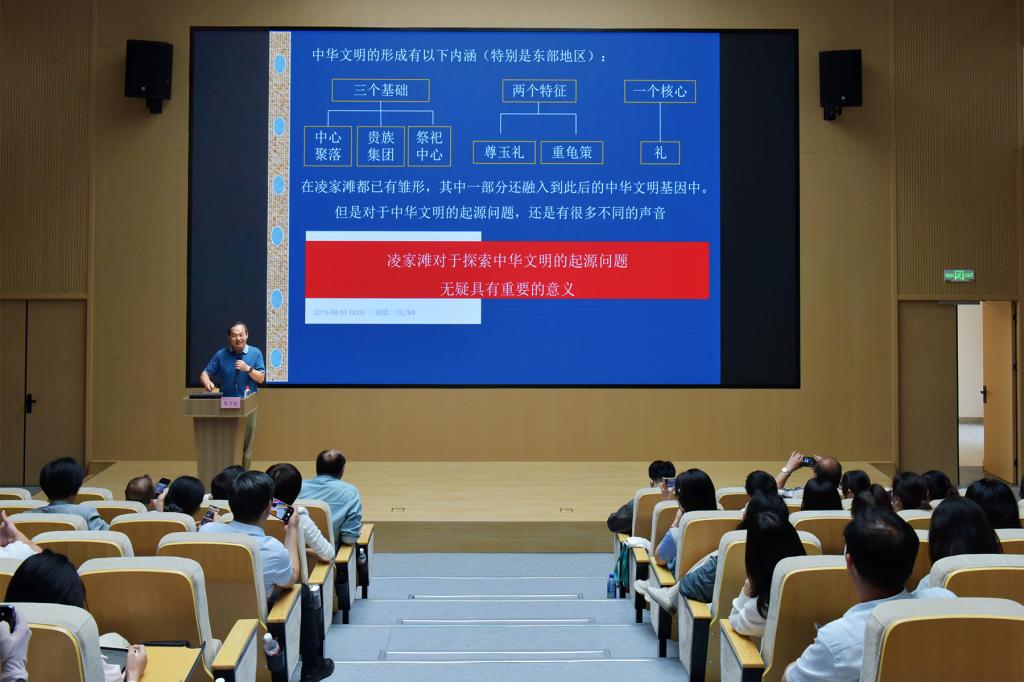 实践教学环节在凌家滩国家考古遗址公园进行。中国科学技术大学吴卫红教授为大家作《凌家滩与中国早期文明》主题报告。与会人员走进凌家滩遗址博物馆,驻足观摩精美的玉器、陶器和石器,对凌家滩玉器与红山文化、良渚文化玉器的异同展开了深入讨论。(撰稿:杨婷婷 邱浩 审核:欧广丽 林忠心 张苒 王菁)