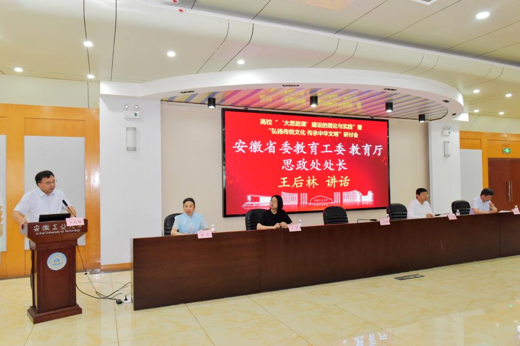 王俊介绍了学校的历史变迁、文化积淀、改革创新,特别是深度参与安徽“三地一区”建设和长三角一体化协同创新情况。他指出,学校深入贯彻落实习近平总书记对学校思政课建设作出的重要指示精神,高质量筑牢“大思政课”课堂阵地、高水平搭建“大思政课”资源平台、高标准建强“大思政课”师资队伍,取得了显著的成效。希望与会专家学者共同探索新时代“大思政课”建设的创新路径,推动思政课建设与中华优秀传统文化深度融合。