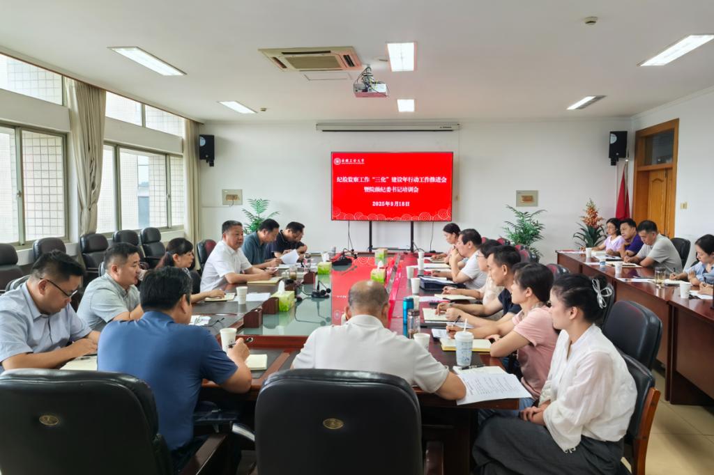 9月18日下午,学校召开“纪检监察工作规范化法治化正规化建设年行动”工作推进会暨院级纪委书记培训会。校党委常委、纪委书记、监察专员吴春雷出席,党委巡察工作办公室负责人、各院级纪委书记、党总支(直属党支部)纪检委员和纪委办公室全体人员参加。