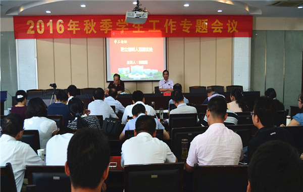 会上,教育部教育发展研究中心专家咨询委员田建国教授为全体参会人员作了《把立德树人落到实处》的专题报告。学工部部长姚敏和校团委书记王先柱分别就新学期的工作目标、工作重点和工作思路作出部署。