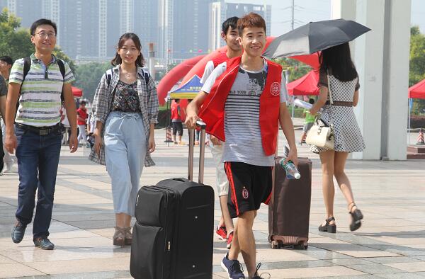 学校还在火车站和汽车站安排迎新车辆,志愿者们早早到达,等候来自各地的新生及家长,引导他们登上校车。在秀山校区迎新现场,各学院设置迎新服务点,为新生及家长提供贴心的志愿引导服务;在佳山校区迎新现场,商学院、能环学院和管工学院也早早设置迎新服务点,结合新生及家长的需求,提供多方面咨询和服务。格外引人注目的是接待点的“绿色通道”,为家庭经济困难新生提供便捷服务及资助政策咨询等。各个接待点还设立了医疗站为新生提供医疗服务,设立了临时休息点供新生和家长休息。