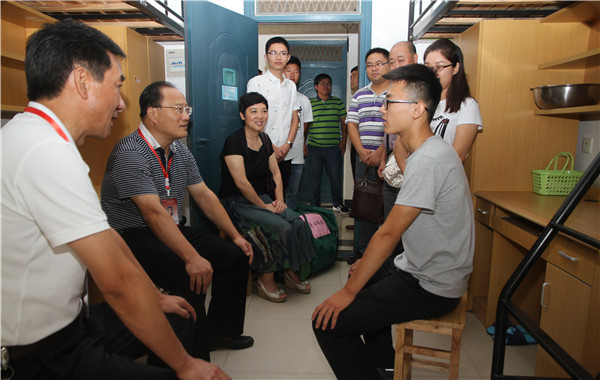 9日上午,校党委书记刘新跃、副书记陈润来到迎新现场和学生宿舍,了解新生入学报到情况,看望新生及家长,慰问迎新工作人员和志愿者。