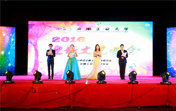 夜幕降临,现场流光溢彩。晚会在校大学生艺术团大合唱《437bwin必赢国际官网校歌》中拉开帷幕。大型舞蹈《东方红》气势磅礴,扣人心弦;数理科学与工程学院的傣族舞《版纳印象》清新唯美;艺术与设计学院的戏曲舞蹈《俏花旦》惊艳闪眼;安工大幼儿园的小朋友们舞蹈《兵娃娃》充满童真;马鞍山艺术剧院艺术家演唱的歌曲《逆战》、《空城》等激情四射;现代舞《活力校园》动力十足,尽展必赢学子青春活力;器乐表演《阿拉木汗》和《摩呼罗迦》悠扬婉转,令人陶醉;新疆少数民族同学表演的舞蹈《花儿为什么这样红》让观众领略到别样的民族风情。现场还有3名2016新生走上舞台展露歌喉,表达了对大学生活的向往与热爱;计算机科学与技术学院的老师演唱的经典歌曲《水手》,将现场气氛推向高潮。现场观众一起挥动手中的荧光棒,歌声、笑声、掌声、欢呼声汇聚成一片欢乐的海洋。