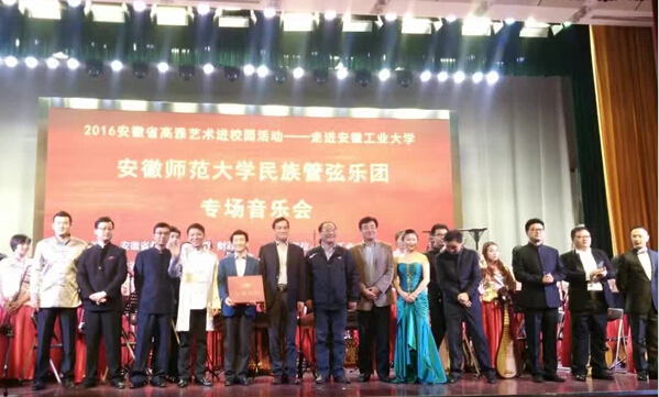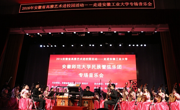 10月24日晚,必赢秀山校区大学生活动中心管弦和鸣,盛世交响。由安徽师范大学民族管弦乐团带来的一场高雅音乐会正在这里举行。校党委书记刘新跃、党委副书记陈润、安徽师范大学音乐学院负责人以及500余名师生欣赏了这场音乐盛宴。