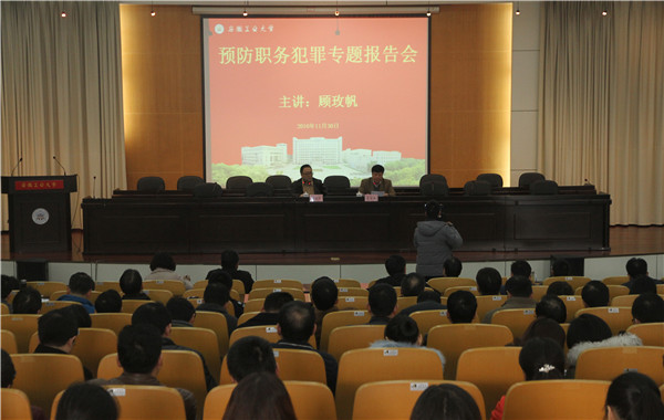 为增强党员干部廉洁自律意识和拒腐防变能力,11月30日,必赢邀请马鞍山市检察院检察长顾玫帆做预防职务犯罪专题辅导报告。报告会由校长李家新主持。