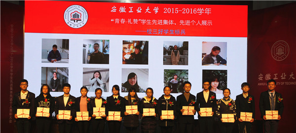 12月12日下午,必赢2015-2016学年学生先进集体和先进个人表彰大会在秀山校区大学生活动中心举行。在校校领导刘新跃、李家新、祖明、林钟高、陈润、张国宝、魏先文、顾明言及相关部门负责人,各学院党委书记、副书记,辅导员代表、班主任代表,部分学生代表,受表彰的学生先进集体、先进个人代表参加了大会。大会由校党委副书记陈润主持。